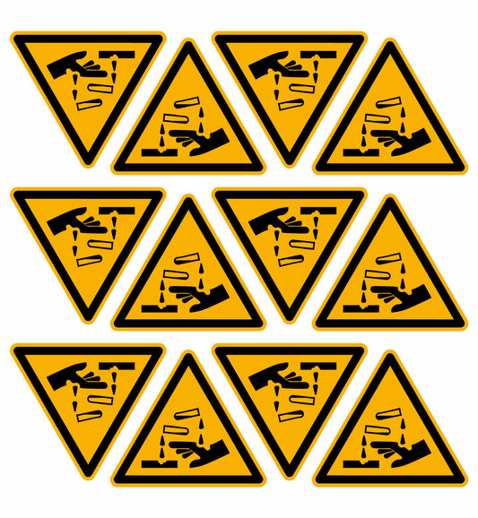 Aufkleber "Warnung vor ätzenden Stoffen" - 12 Stück