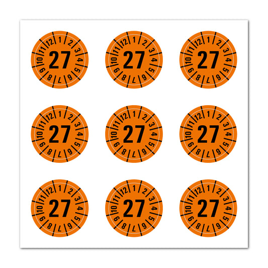 Prüfplaketten 2027 selbstklebend Ø 35 mm 9 Stück pro Bogen | Robust & zuverlässig