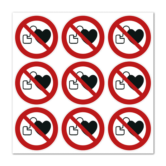 Aufkleber "Kein Zutritt für Personen mit Herzschrittmachern oder implantierten Defibrillatoren" - 9 Stück -