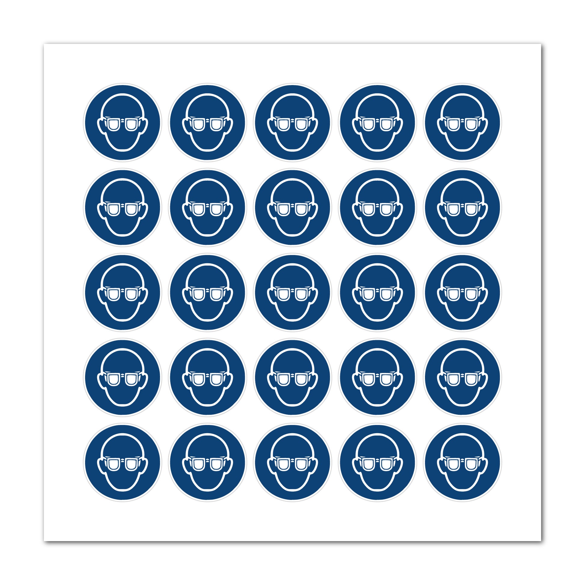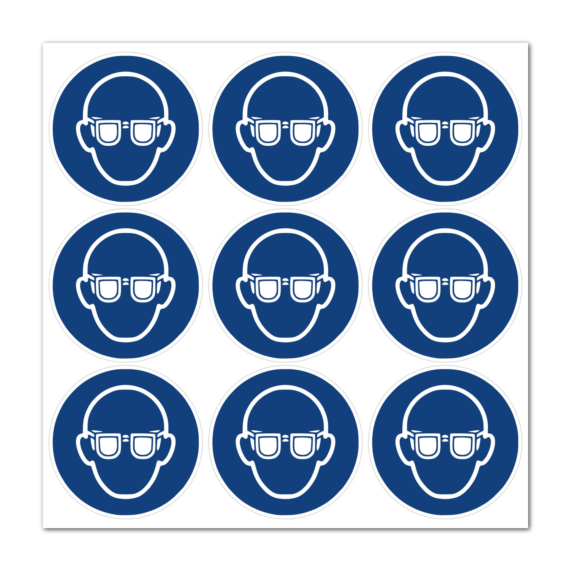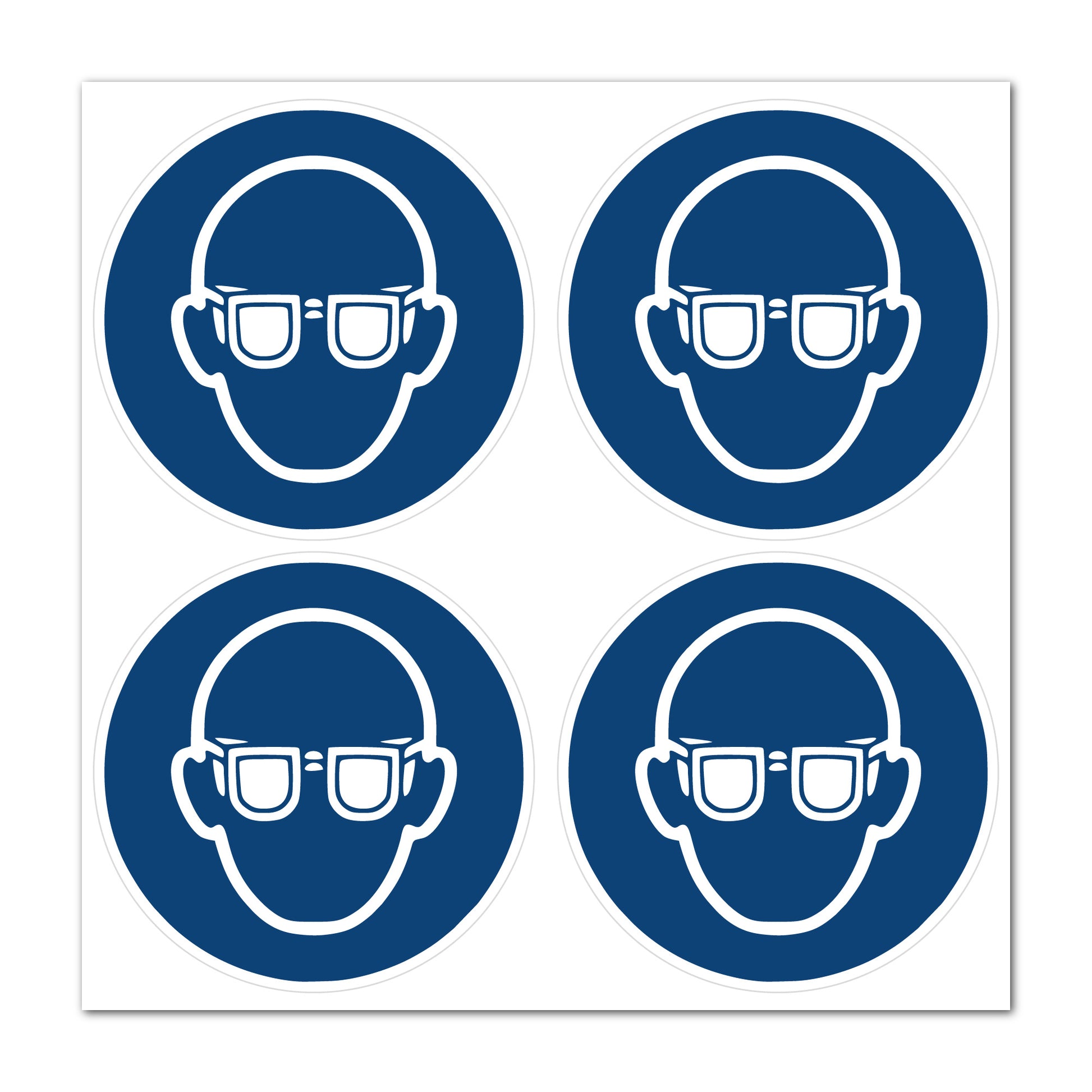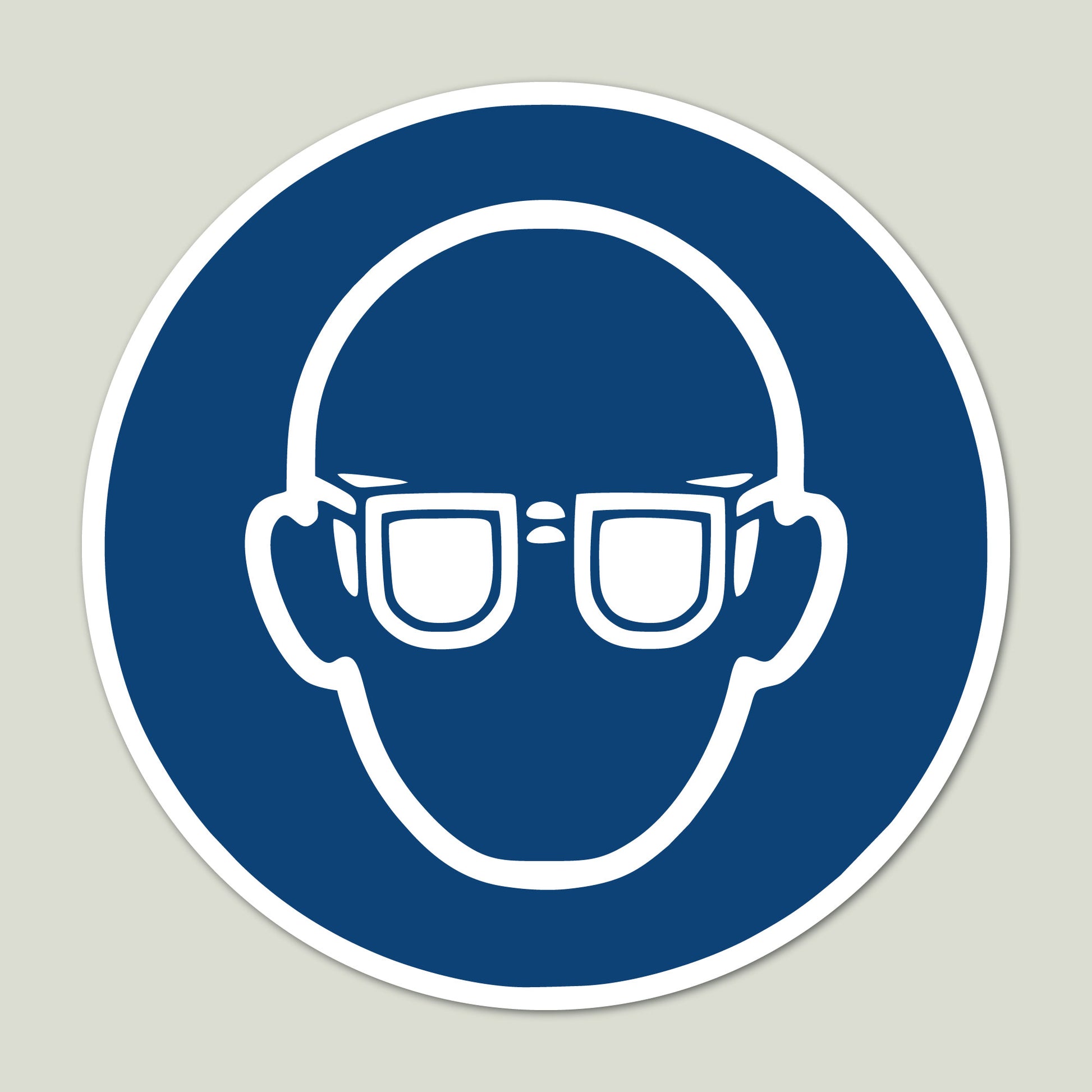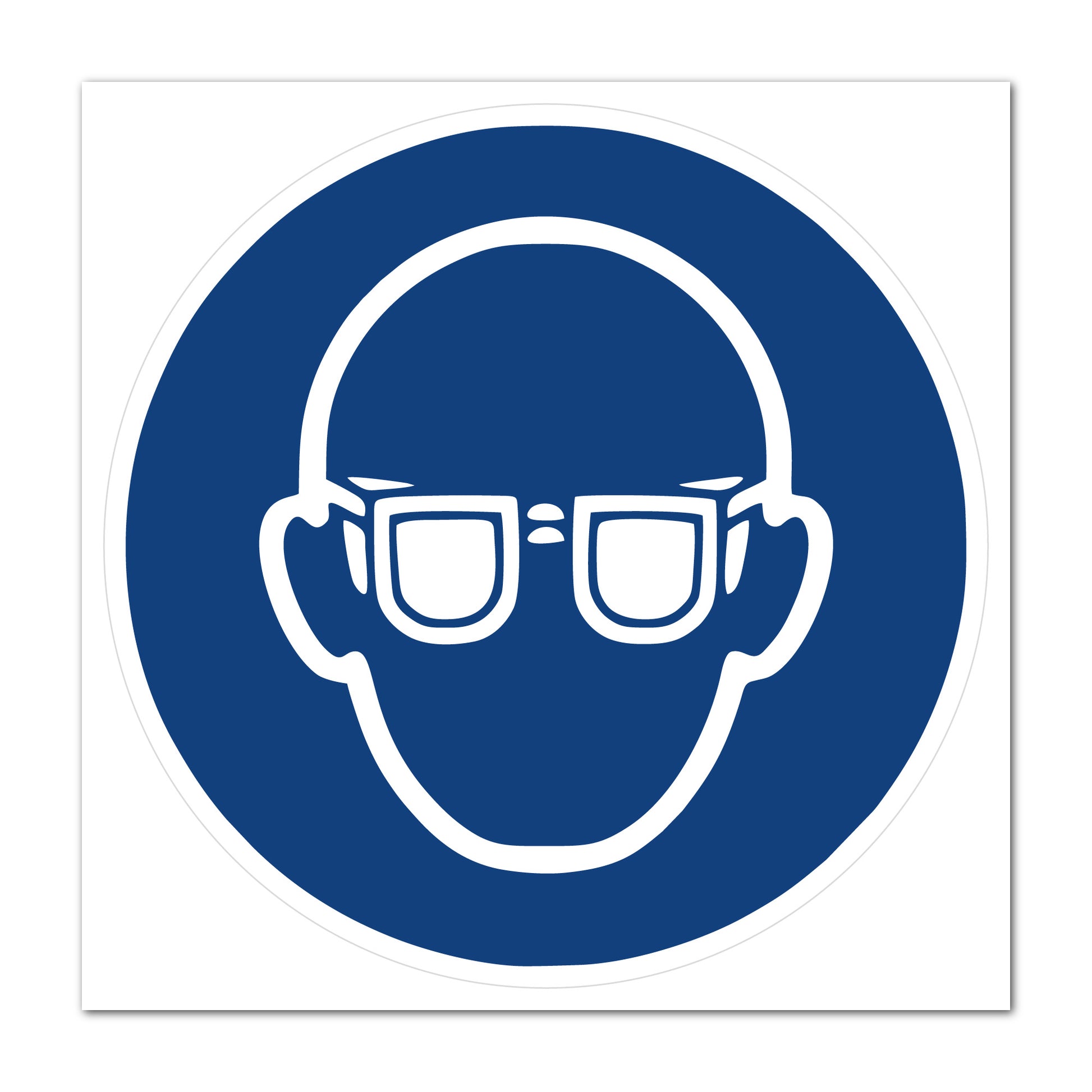 Gebotsschild / Gebotsaufkleber Augenschutz benutzen, gemäß ASR A1.3/M004, DIN EN ISO 7010/M004, wetterfest für Innen- und Außeneinsatz, Material: selbstklebende Folie, mit Oberflächenlaminat zum Schutz vor mechanischen und chemischen Einflüssen.