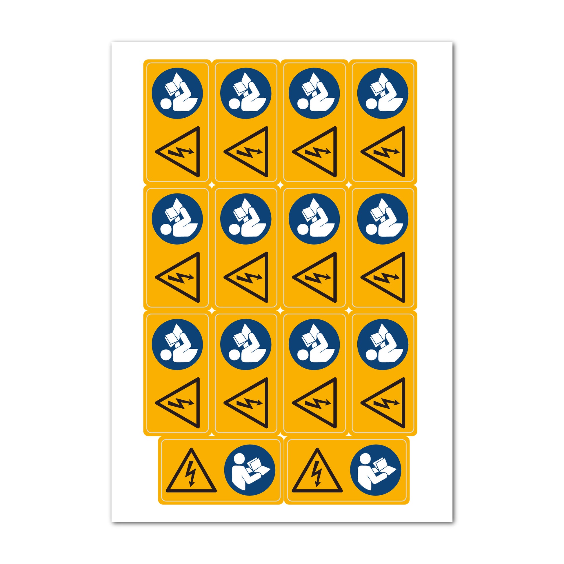 Warnaufkleber / Warnschild Einschalten nach lesen der Bedienungsanleitung , gemäß ASR A1.3, DIN EN ISO 7010, wetterfest für Innen- und Außeneinsatz, Material: selbstklebende Folie, mit Oberflächenlaminat zum Schutz vor mechanischen und chemischen Einflüssen, Masse: 25 x 50 mm, 14 Stück auf einem Bogen