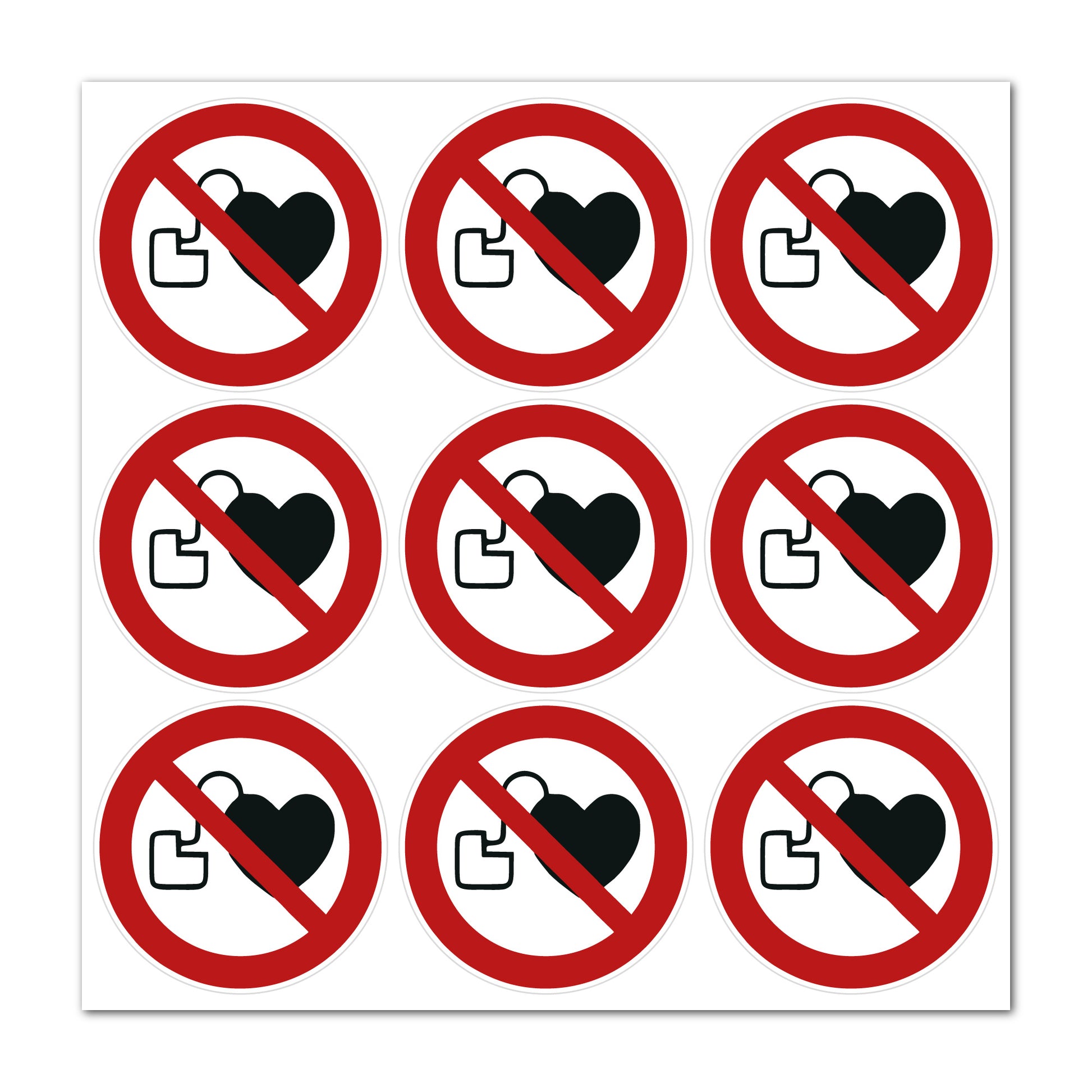 Aufkleber "Kein Zutritt für Personen mit Herzschrittmachern oder implantierten Defibrillatoren" - 9 Stück -