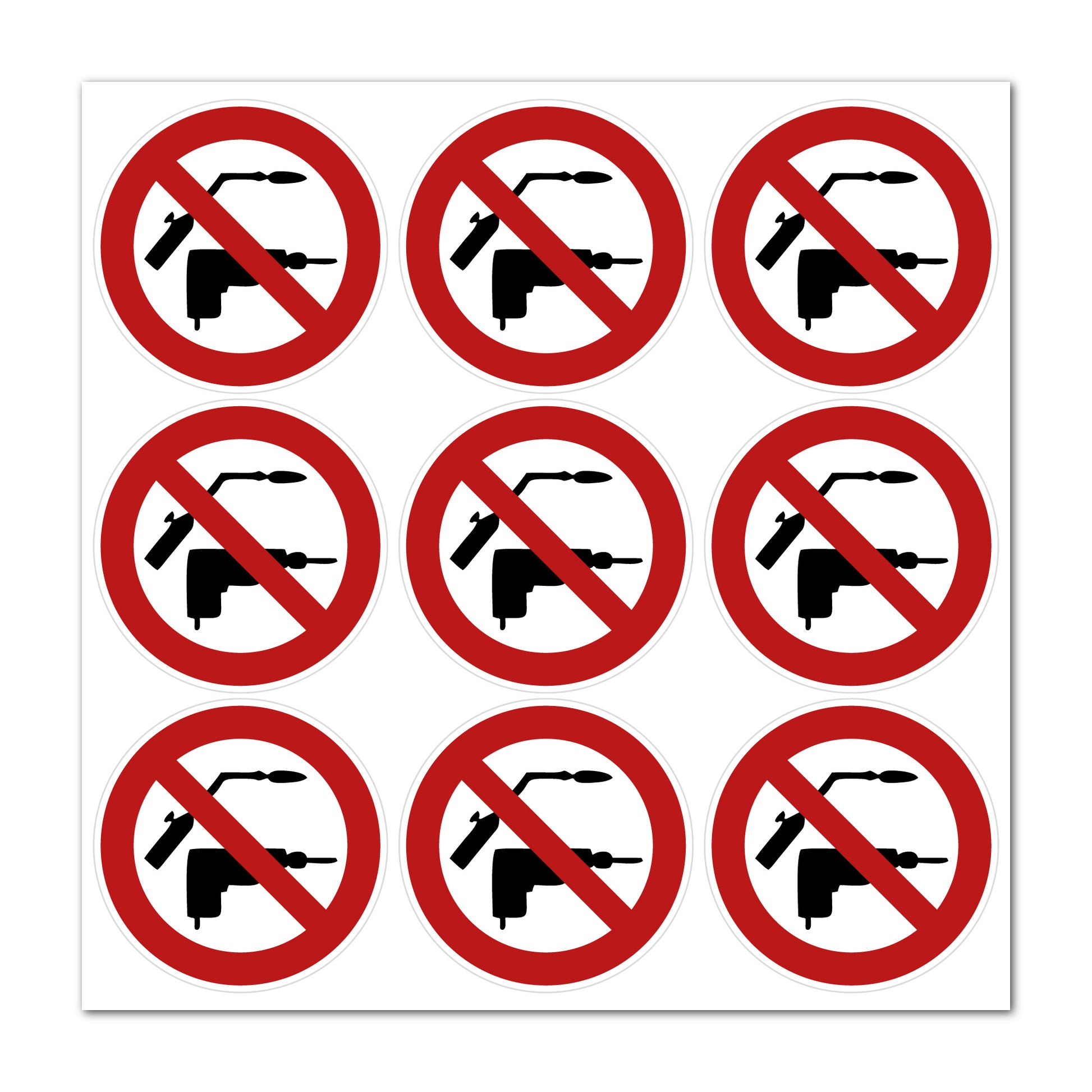 Aufkleber "Verbotsschild Bohren und Schweißen" - 9 Stück