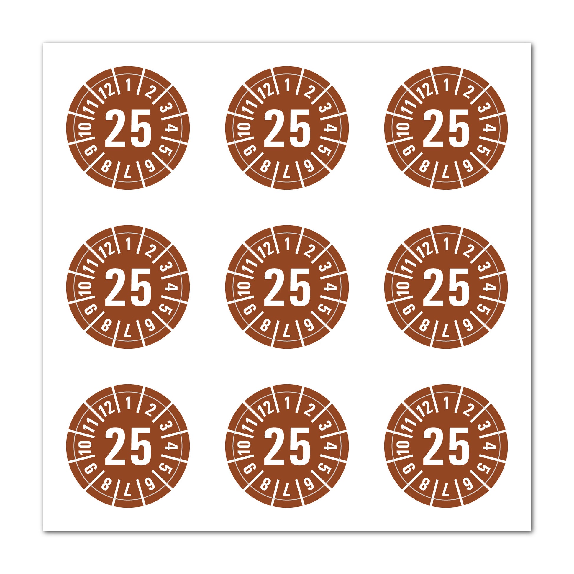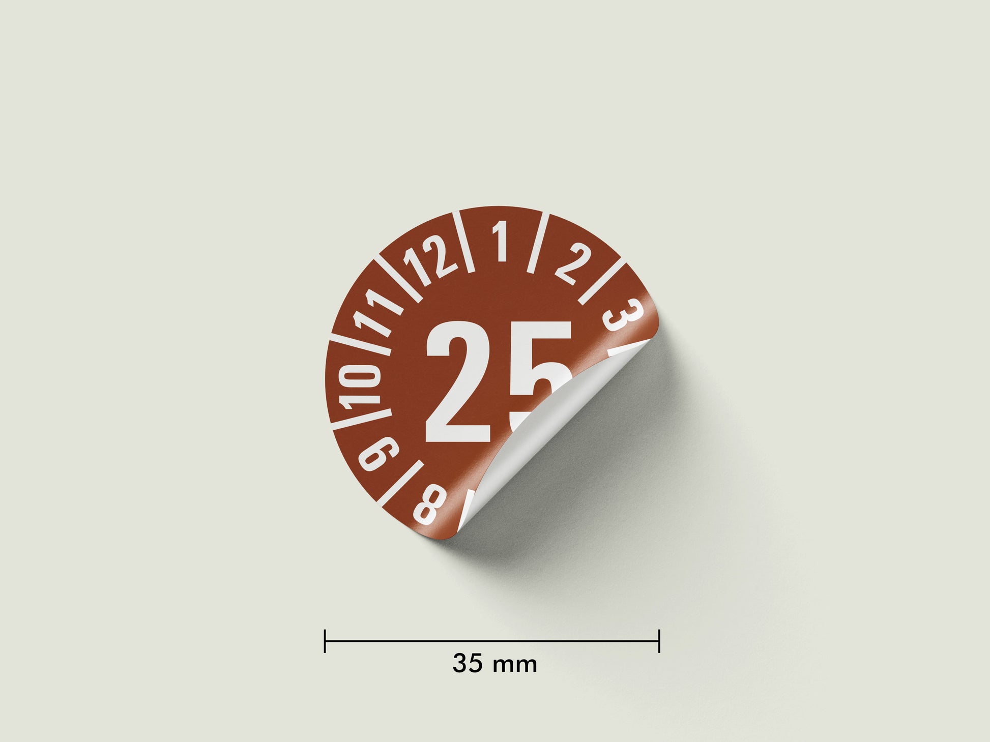 Selbstklebende Prüfplaketten 2025, Ø 35 mm. Ideal für Wartung & Sicherheit. Langlebig, fälschungssicher & einfach anzubringen. Jetzt online bestellen!