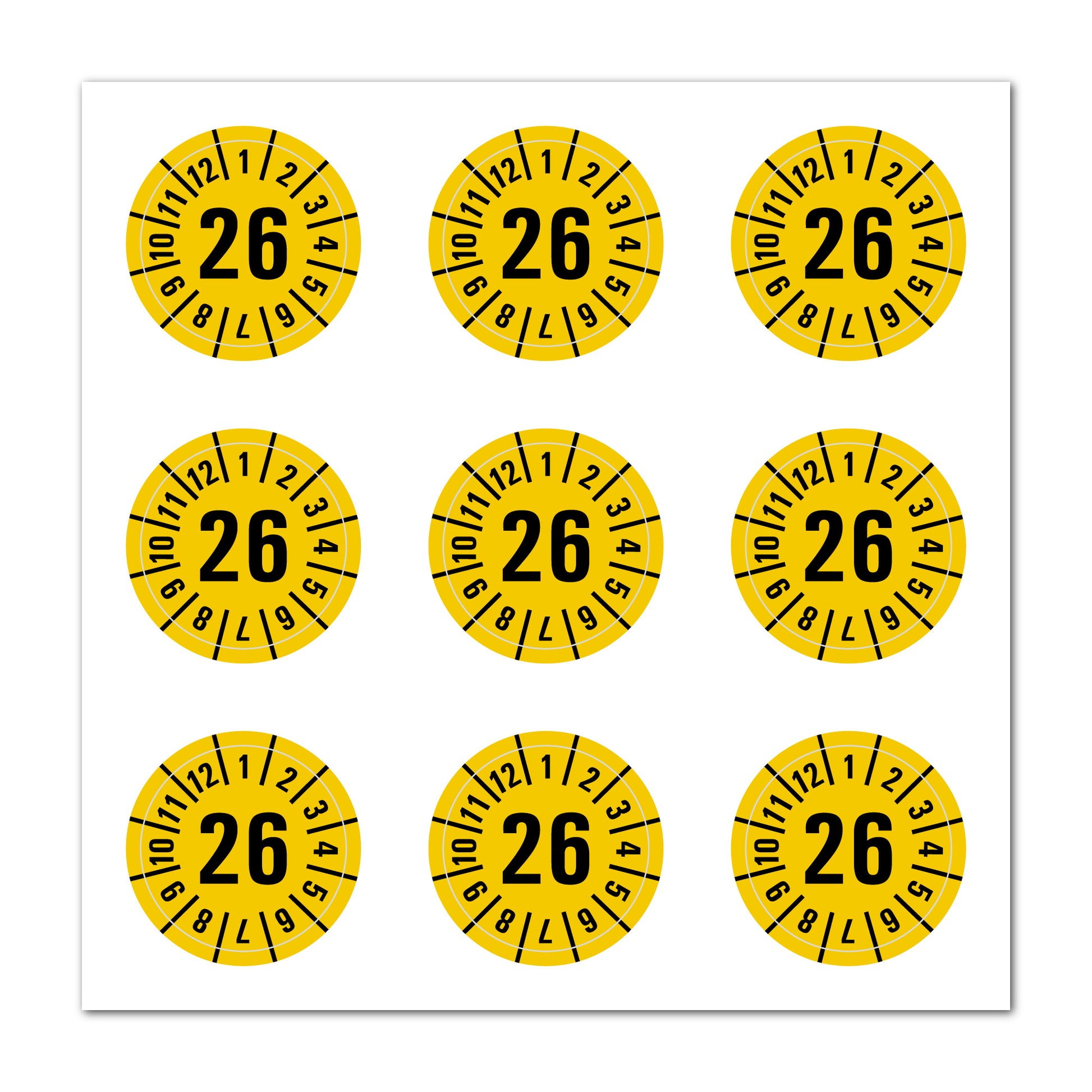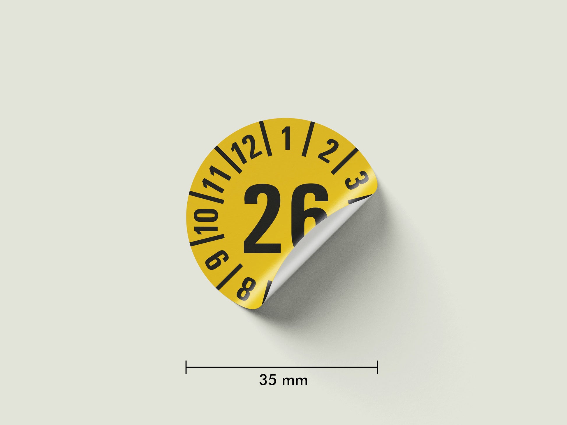 Selbstklebende Prüfplaketten 2026, Ø 35 mm. Ideal für Wartung & Sicherheit. Langlebig, fälschungssicher & einfach anzubringen. Jetzt online bestellen!