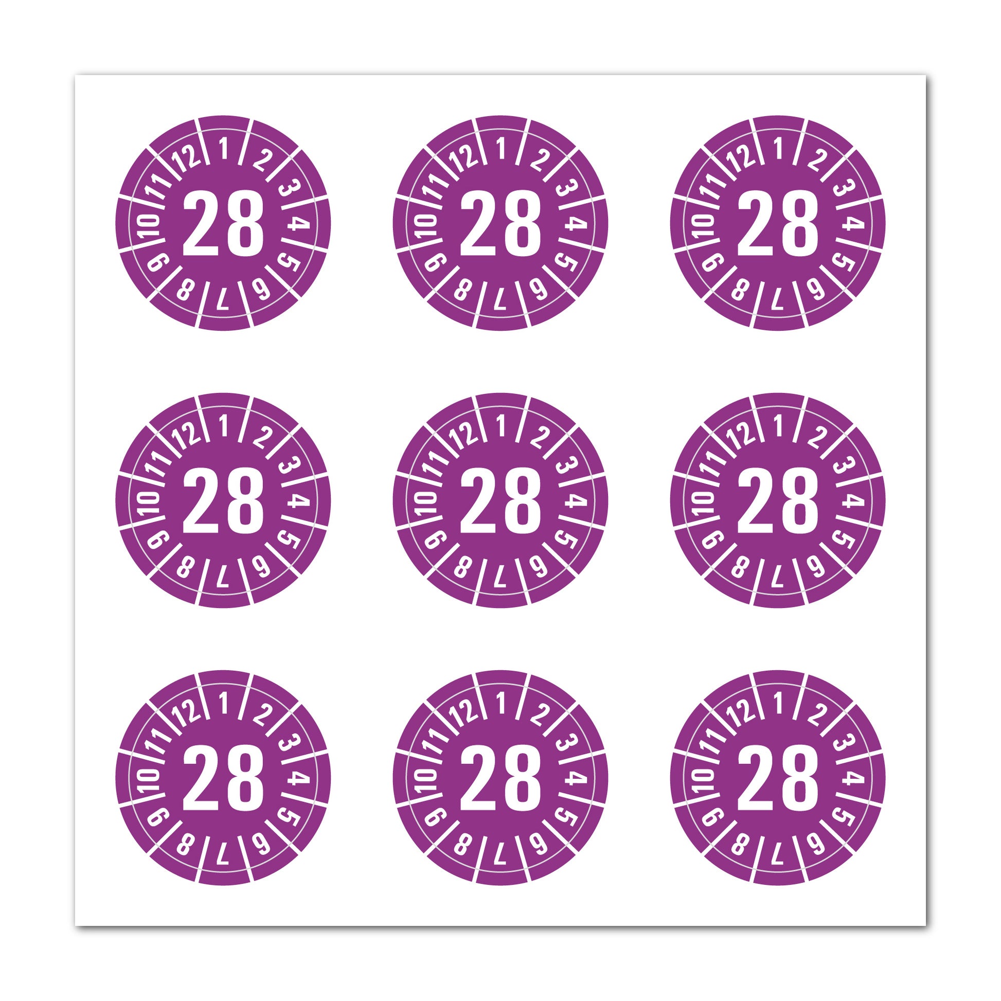 Prüfplaketten 2028 selbstklebend Ø 35 mm 9 Stück pro Bogen | Robust & zuverlässig