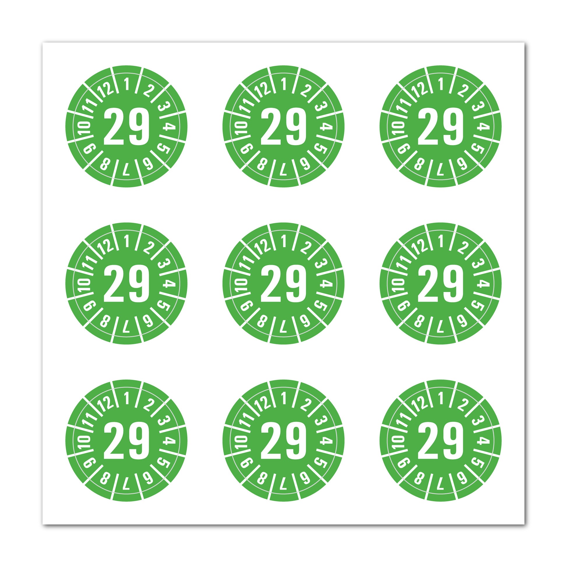 Prüfplaketten 2029 selbstklebend Ø 35 mm 9 Stück pro Bogen | Robust & zuverlässig